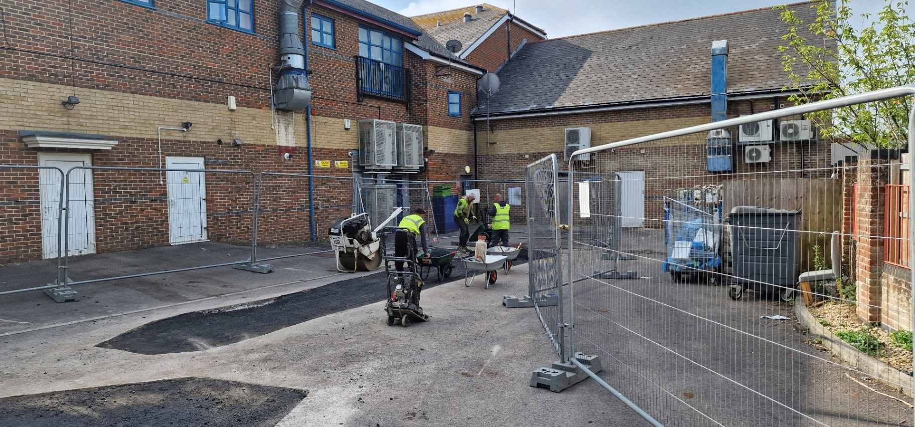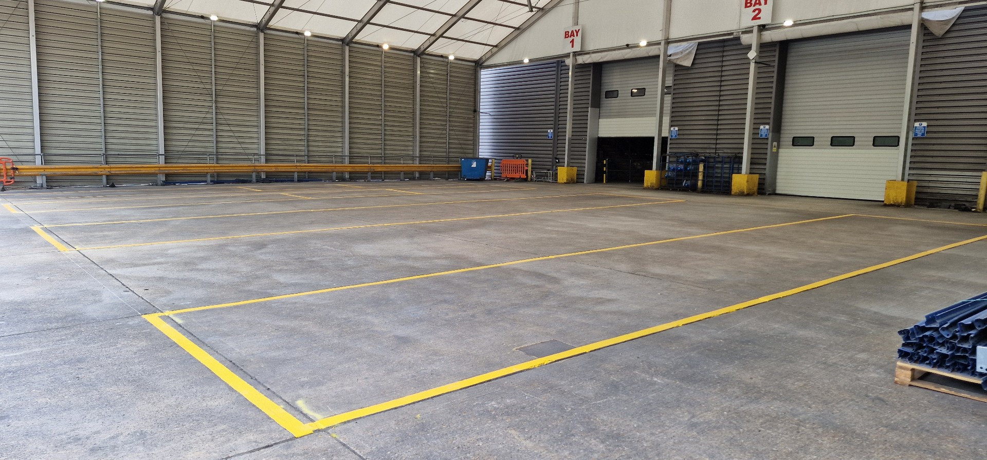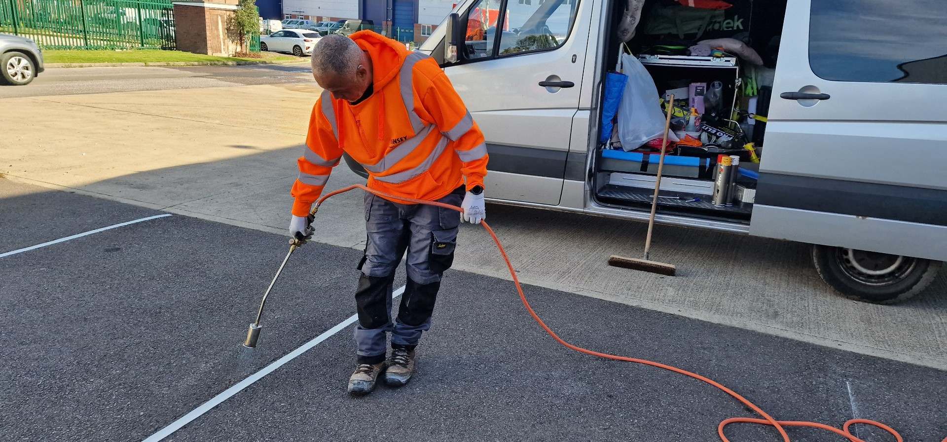 Lines were applied and heat-set using a gas burner to ensure strong adhesion, longevity and clear definition for improved site organisation and vehicle flow.