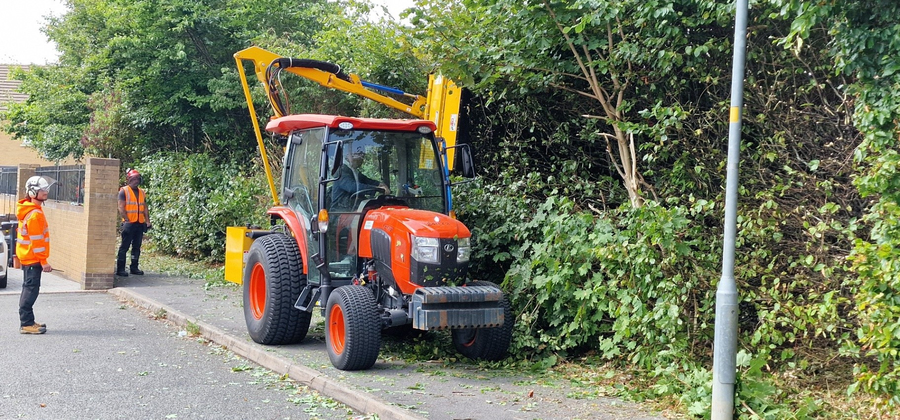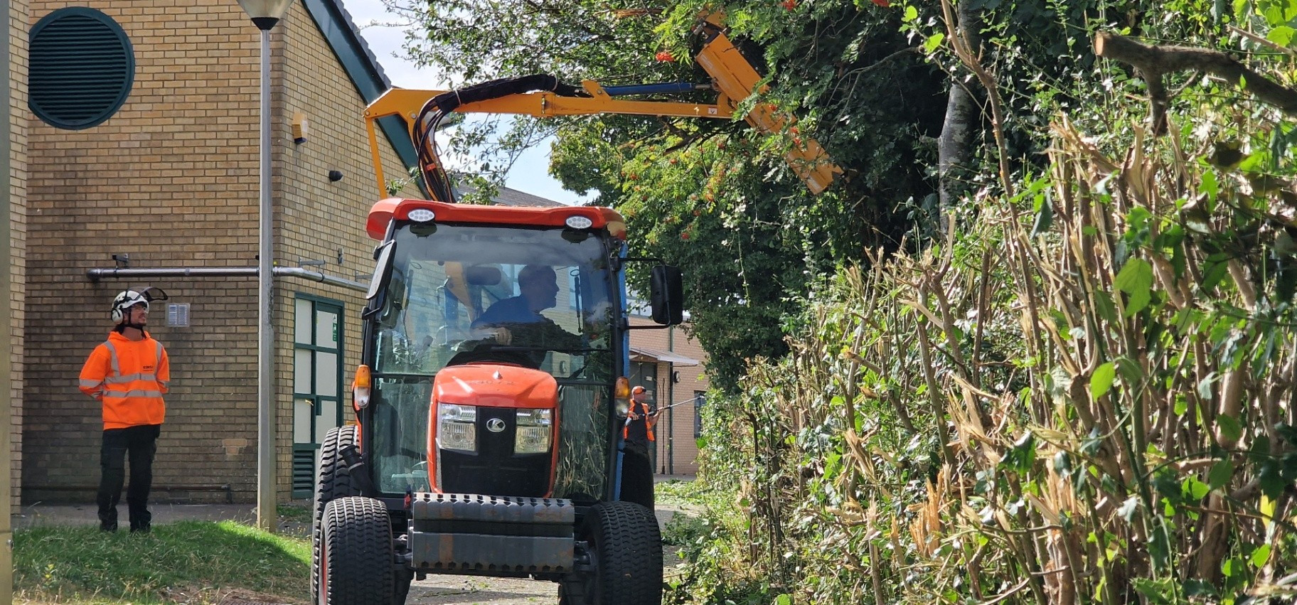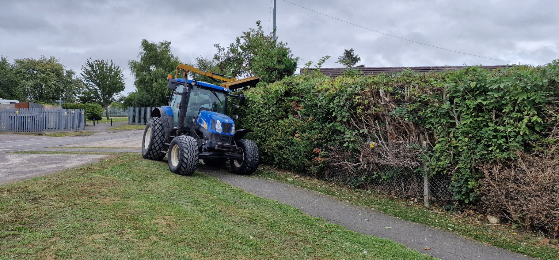 Hedgerow reduction works carried out using both compact and large tractor-mounted flail systems, enabling efficient management of internal and external hedgerows exceeding 8ft in height.