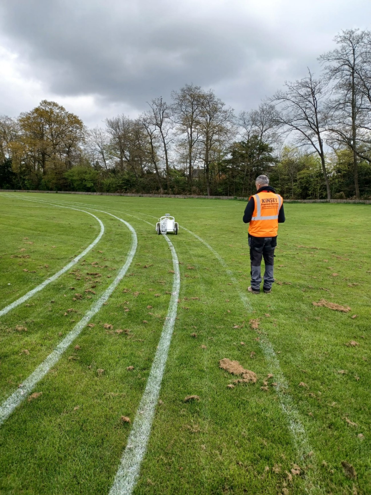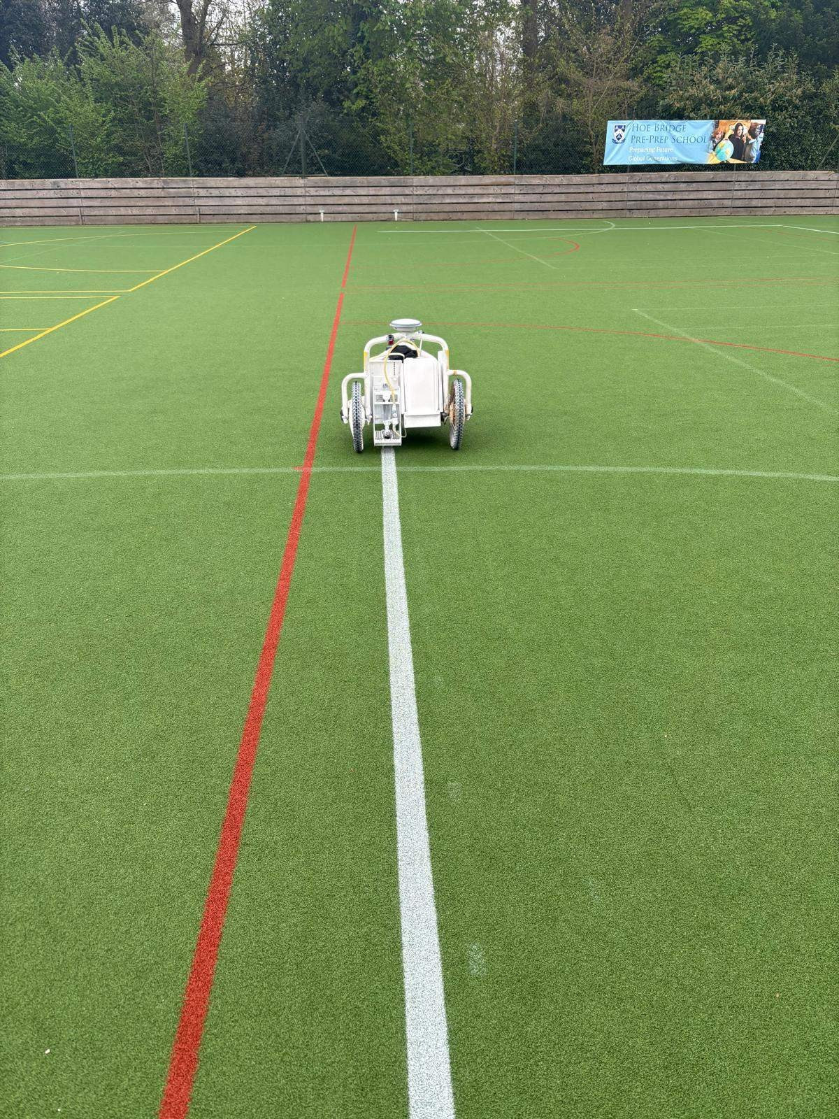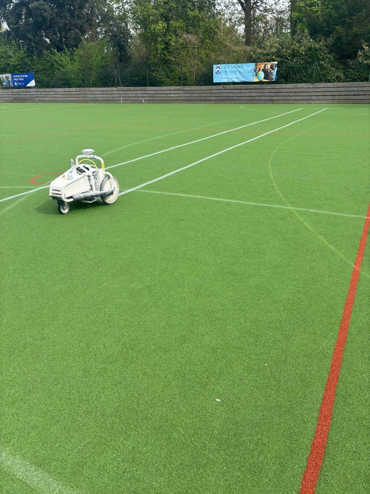400m running track and separate 100m sprint track marking delivered on a school field using our Tiny Mobile Robot automated marking system.