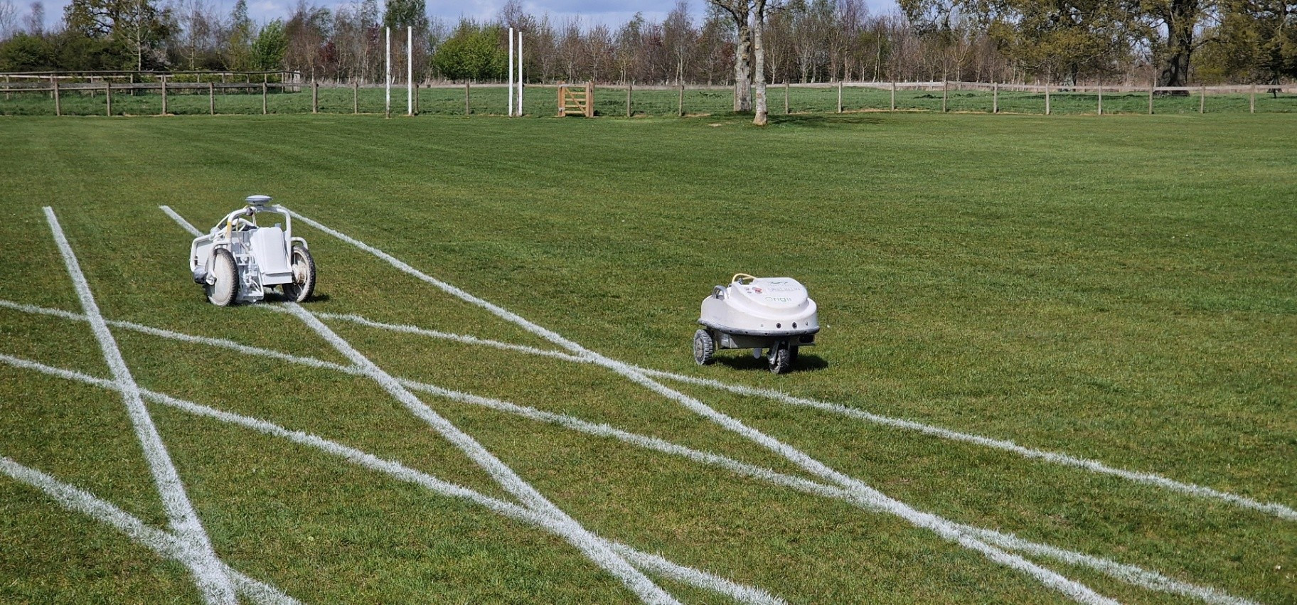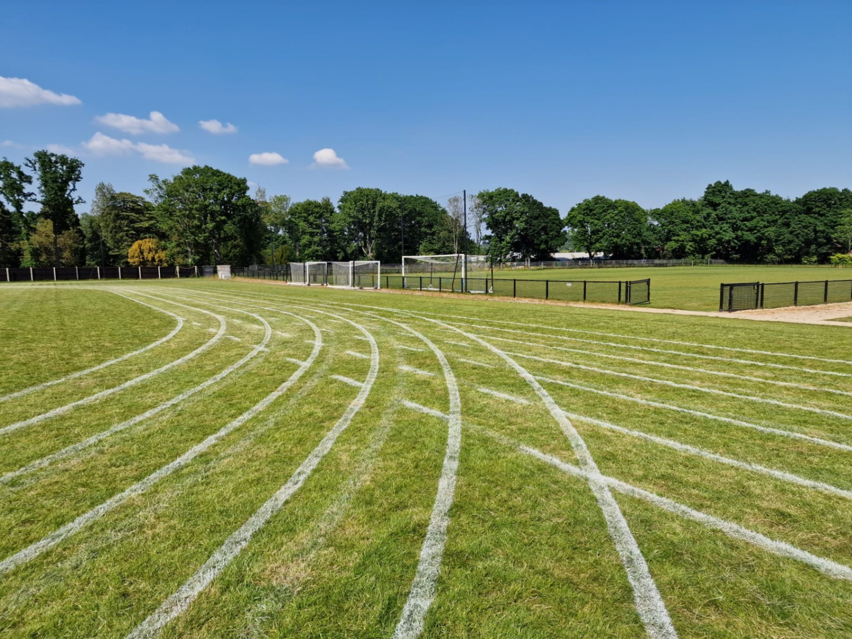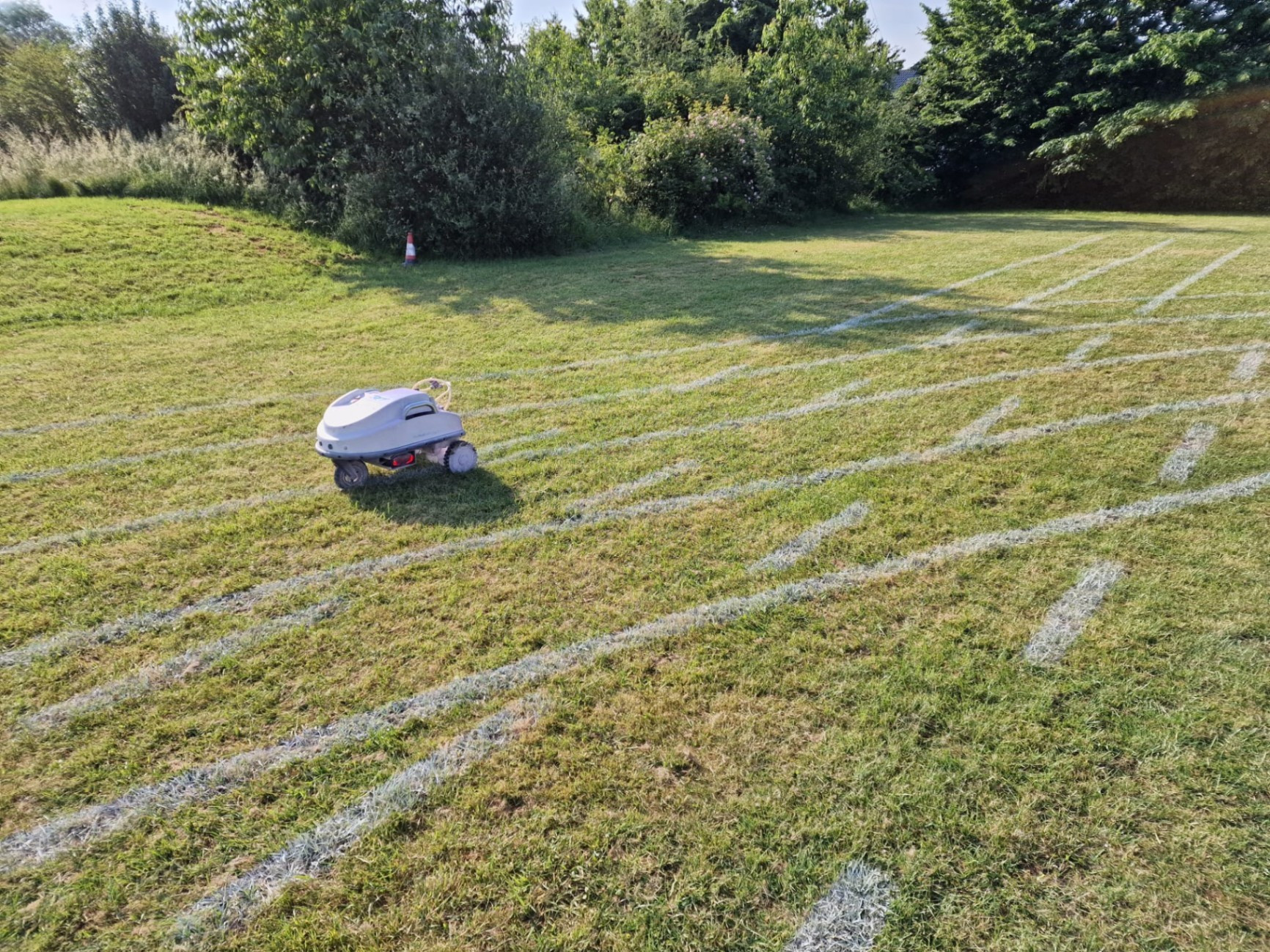 400m running track and separate 100m sprint track marking delivered on a school field using our Tiny Mobile Robot automated marking system.