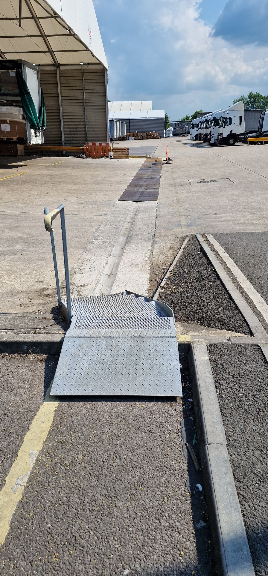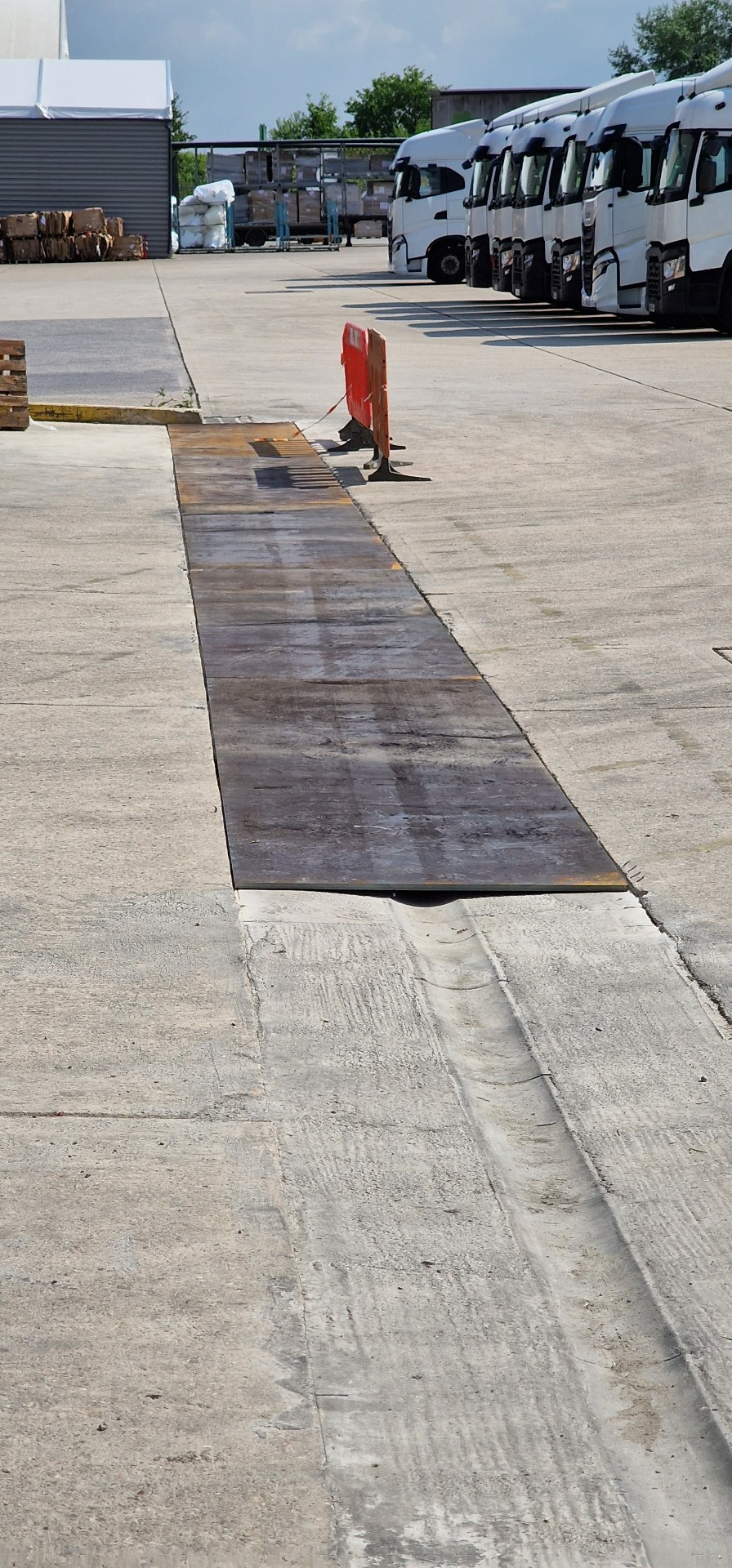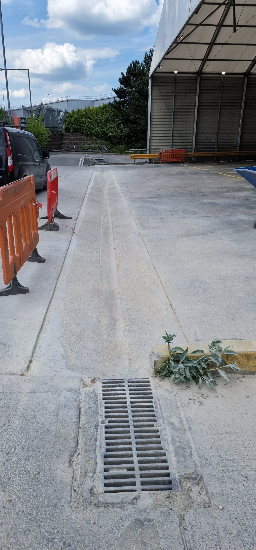 Full commercial site upgrade delivered to improve safety, durability and operational efficiency, including concrete removal, drainage channel modification and installation of heavy-duty steel plates to create a reinforced, level surface for vehicle movement.