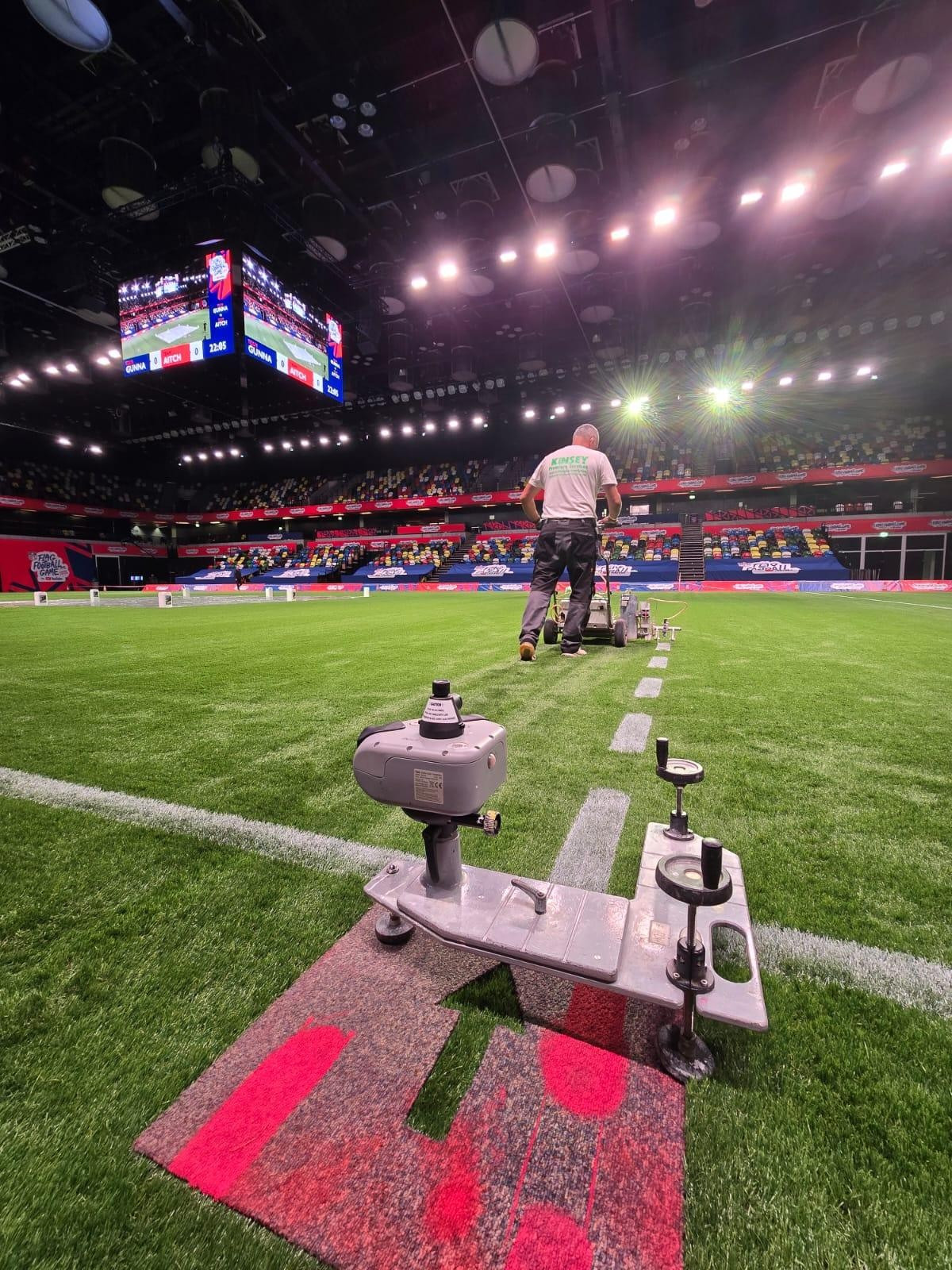 This method ensured exceptional accuracy, clean line definition and efficient delivery, meeting the demands of a high-profile, event-ready surface.