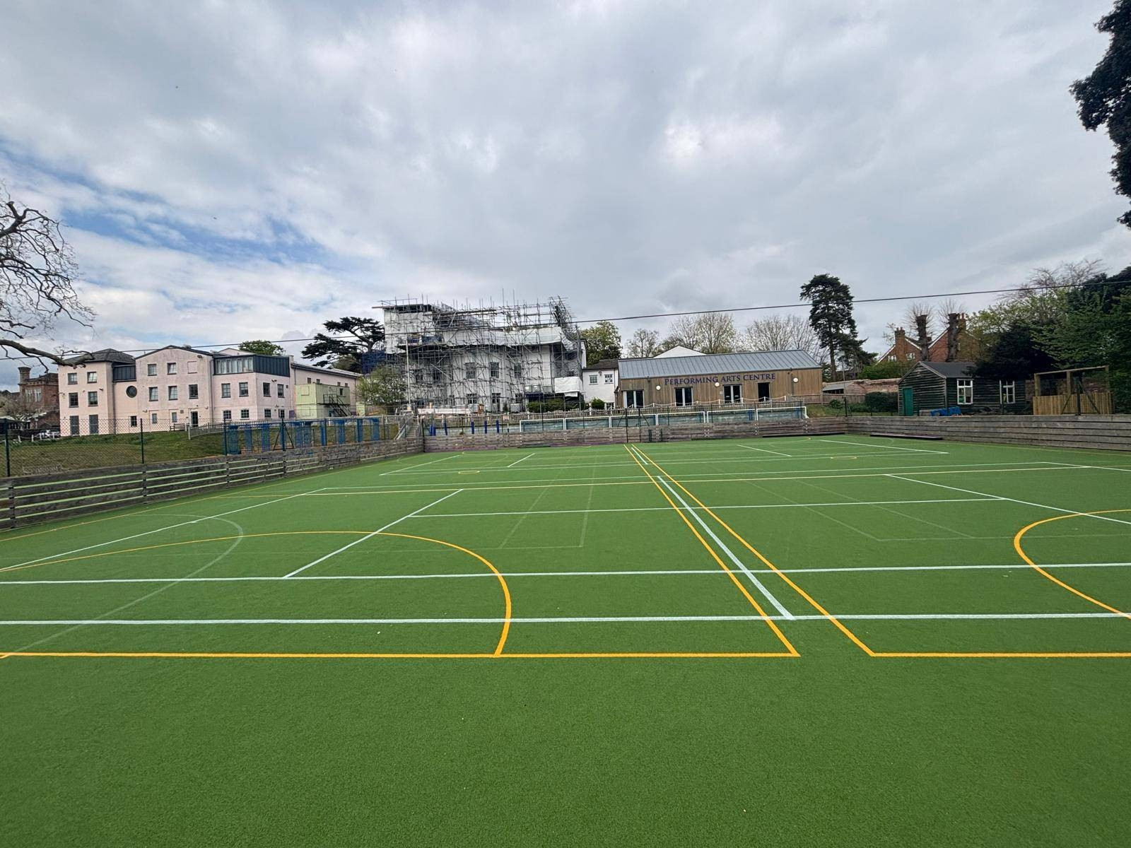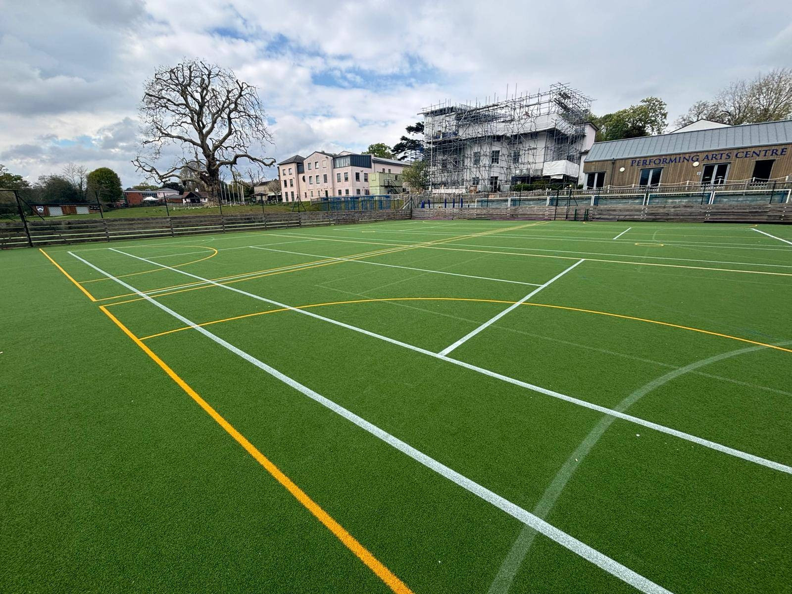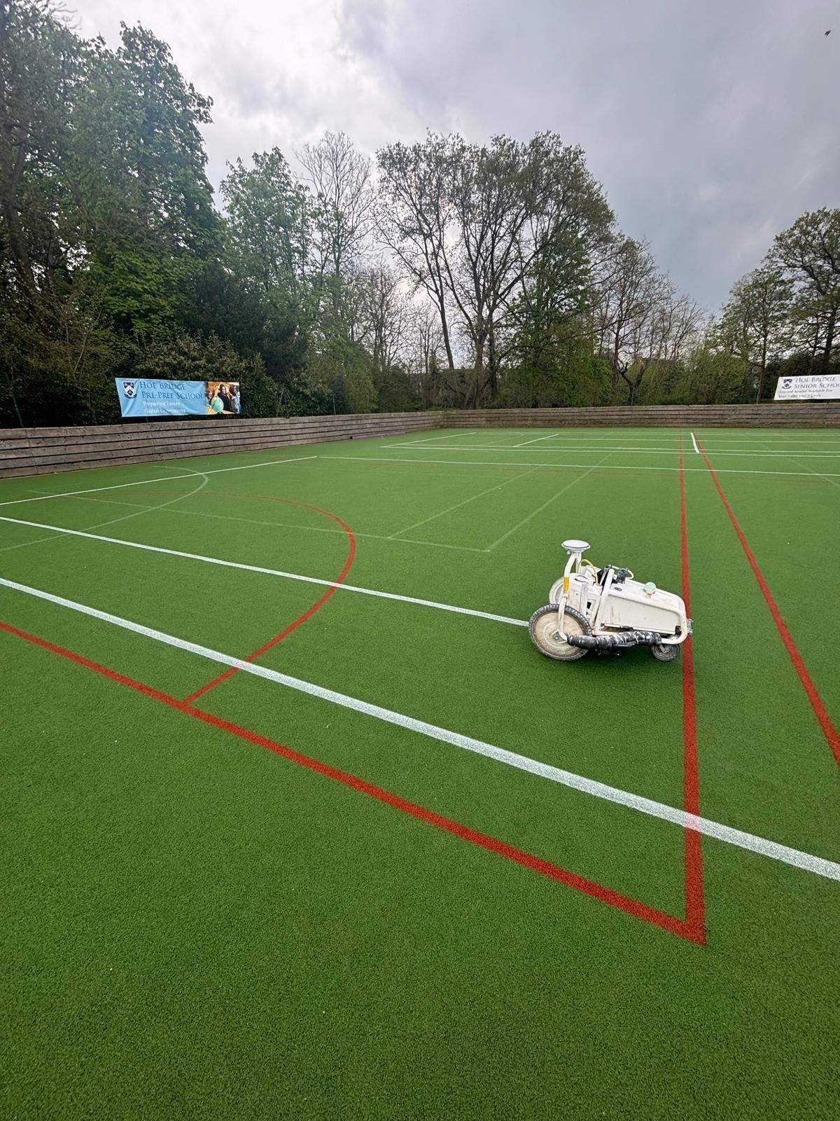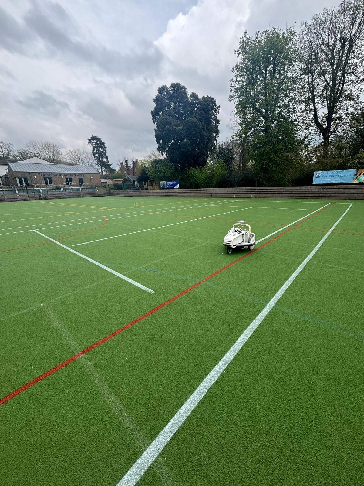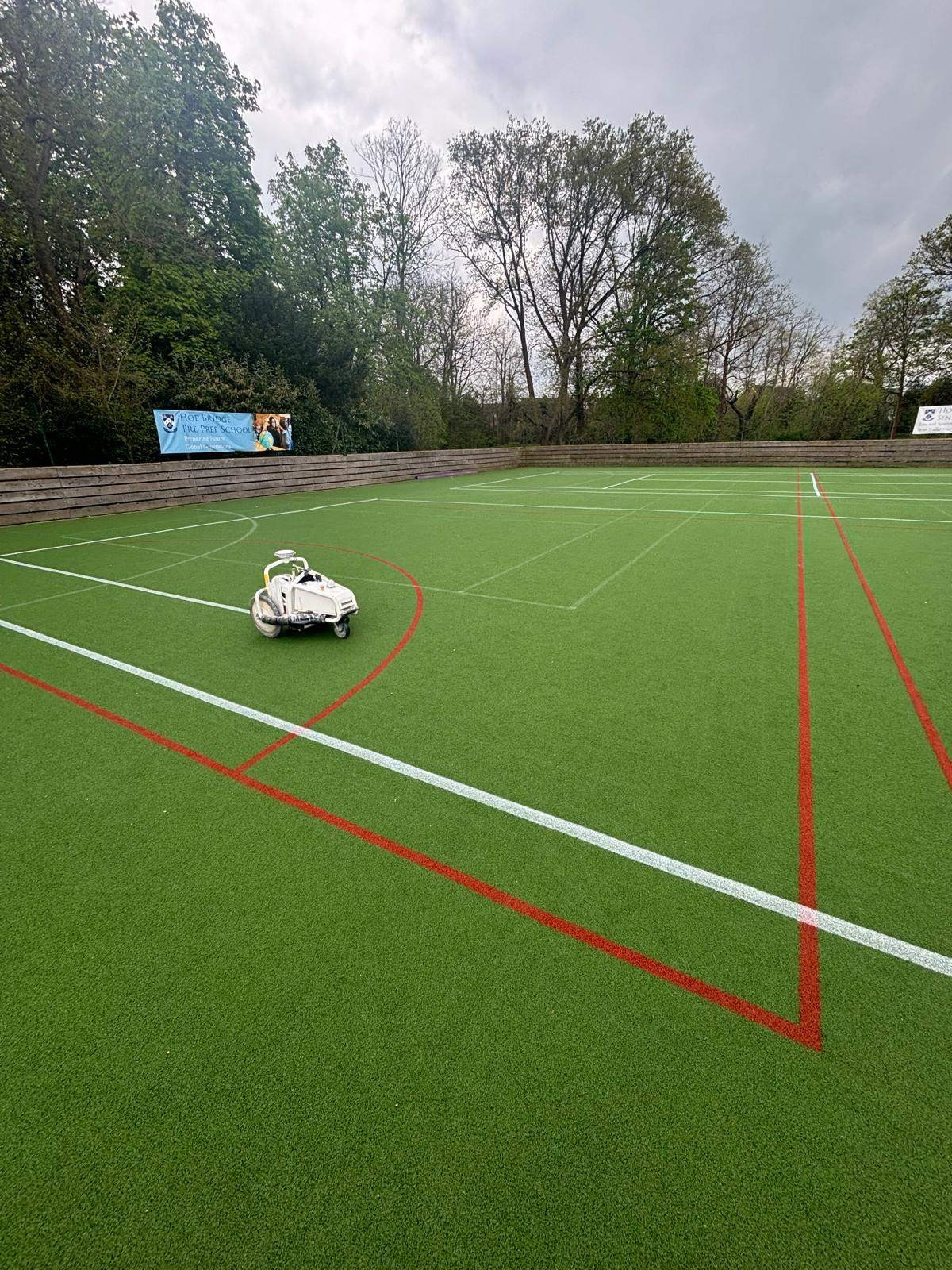 Double tennis court layout installed on a synthetic MUGA surface using our Tiny Mobile Robot Pro, enabling accurate positioning of multiple court lines within a confined space.