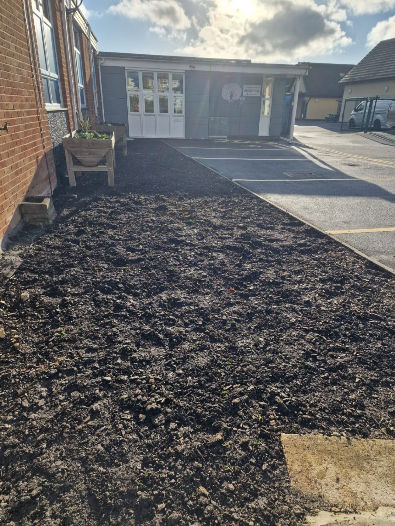 Creation of a wildflower and forest school area through targeted grounds renovation works, including removal of existing turf and topsoil to prepare the site for ecological enhancement.